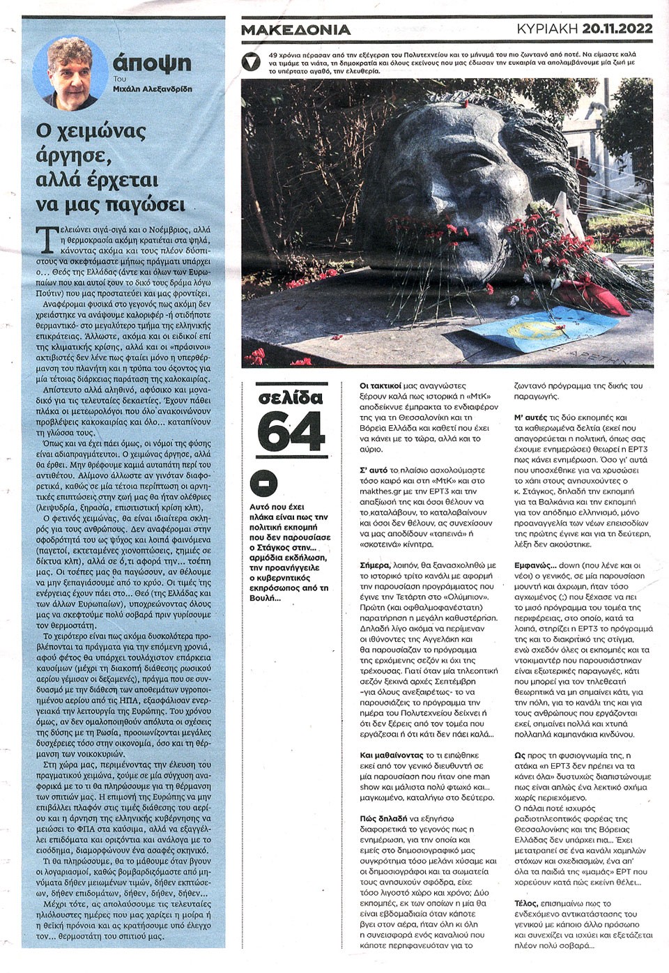 ΜΑΚΕΔΟΝΙΑ ΤΗΣ ΚΥΡΙΑΚΗΣ - 20 Νοεμβρίου 2022