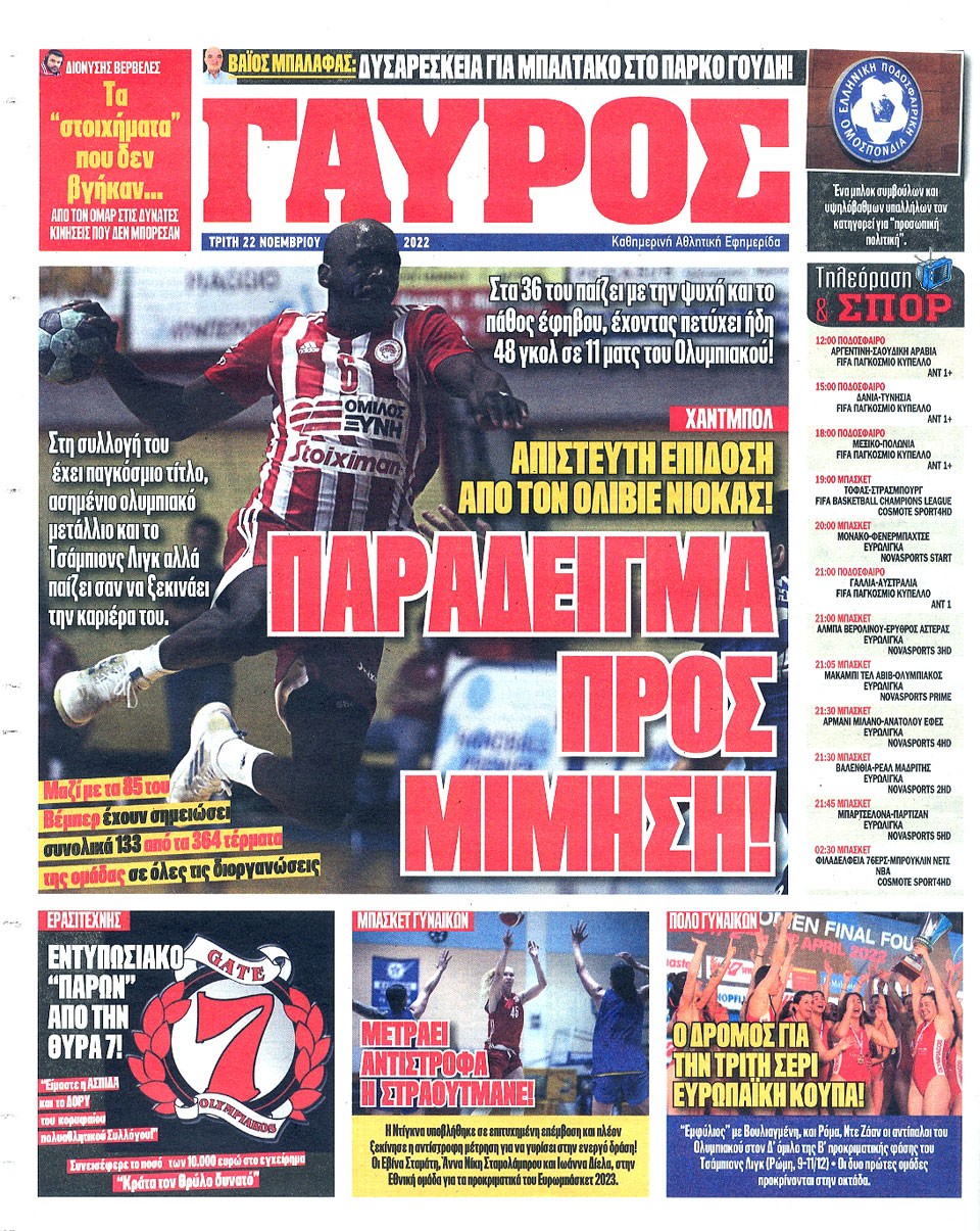 ΠΡΩΤΑΘΛΗΤΗΣ - 22 Νοεμβρίου 2022