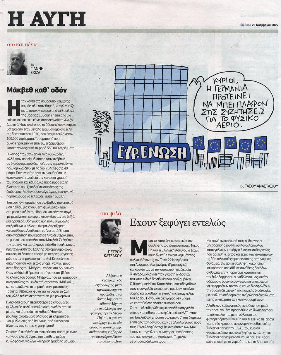 Η ΑΥΓΗ - 26 Νοεμβρίου 2022
