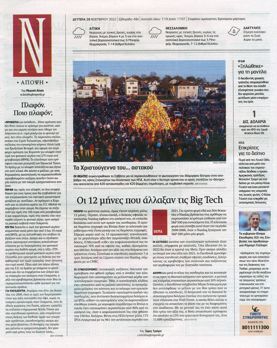 ΝΑΥΤΕΜΠΟΡΙΚΗ - 28 Νοεμβρίου 2022