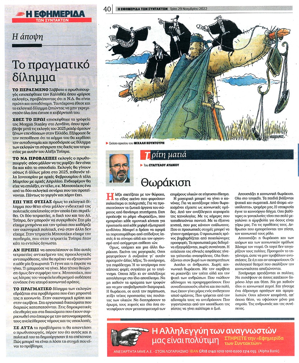 Η ΕΦΗΜΕΡΙΔΑ ΤΩΝ ΣΥΝΤΑΚΤΩΝ - 29 Νοεμβρίου 2022