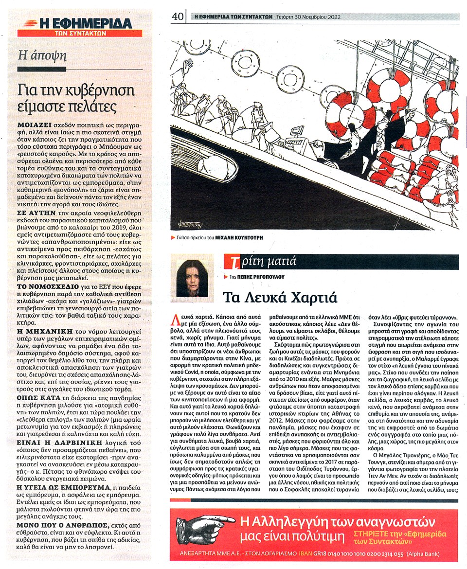 Η ΕΦΗΜΕΡΙΔΑ ΤΩΝ ΣΥΝΤΑΚΤΩΝ - 30 Νοεμβρίου 2022