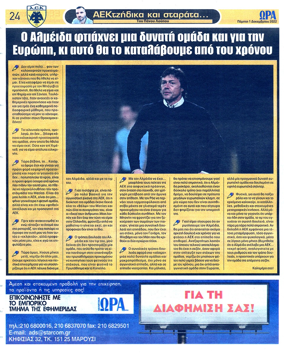 ΑΘΛΗΤΙΚΗ ΩΡΑ ΤΩΝ ΣΠΟΡ - 1 Δεκεμβρίου 2022