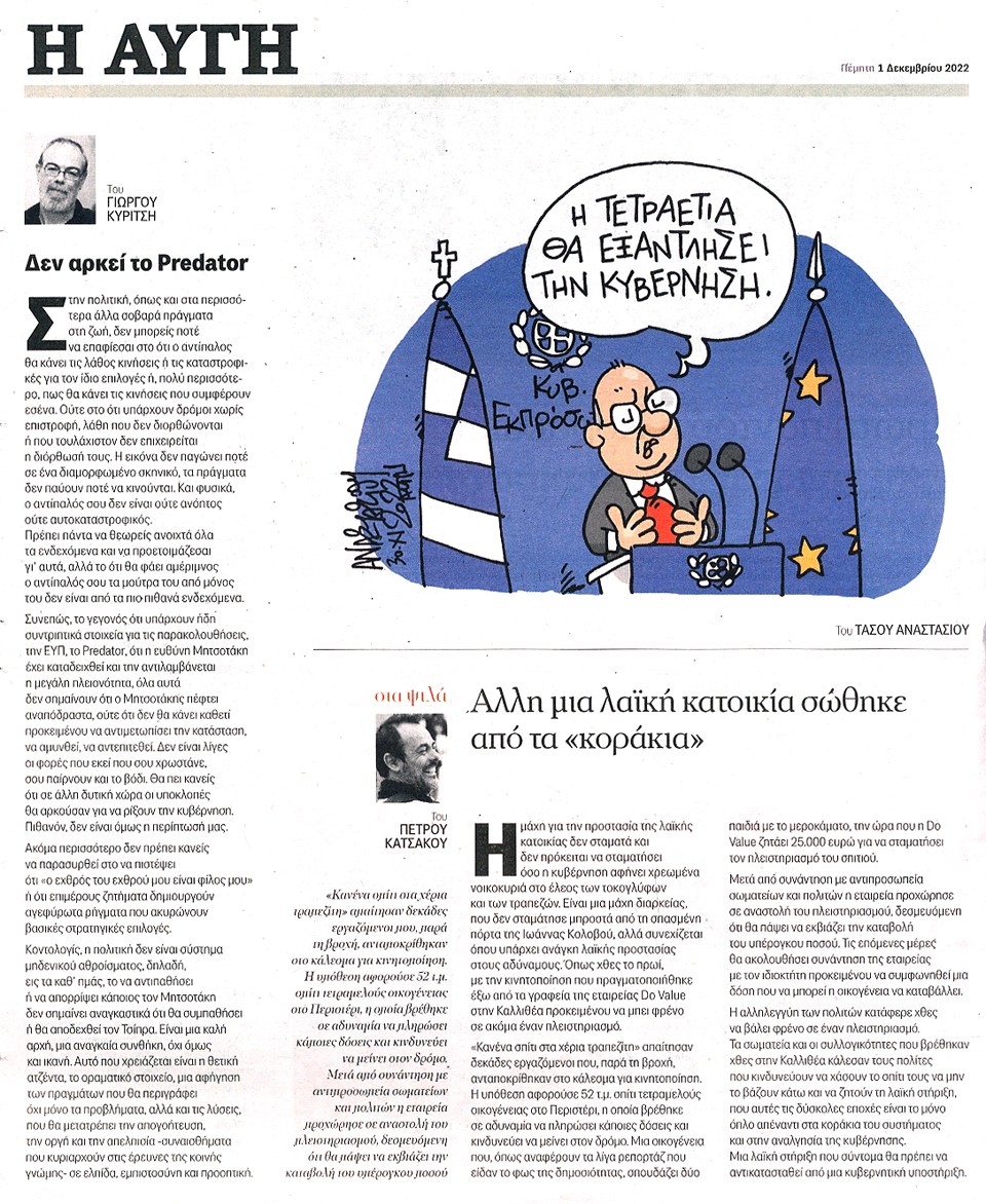 Η ΑΥΓΗ - 1 Δεκεμβρίου 2022