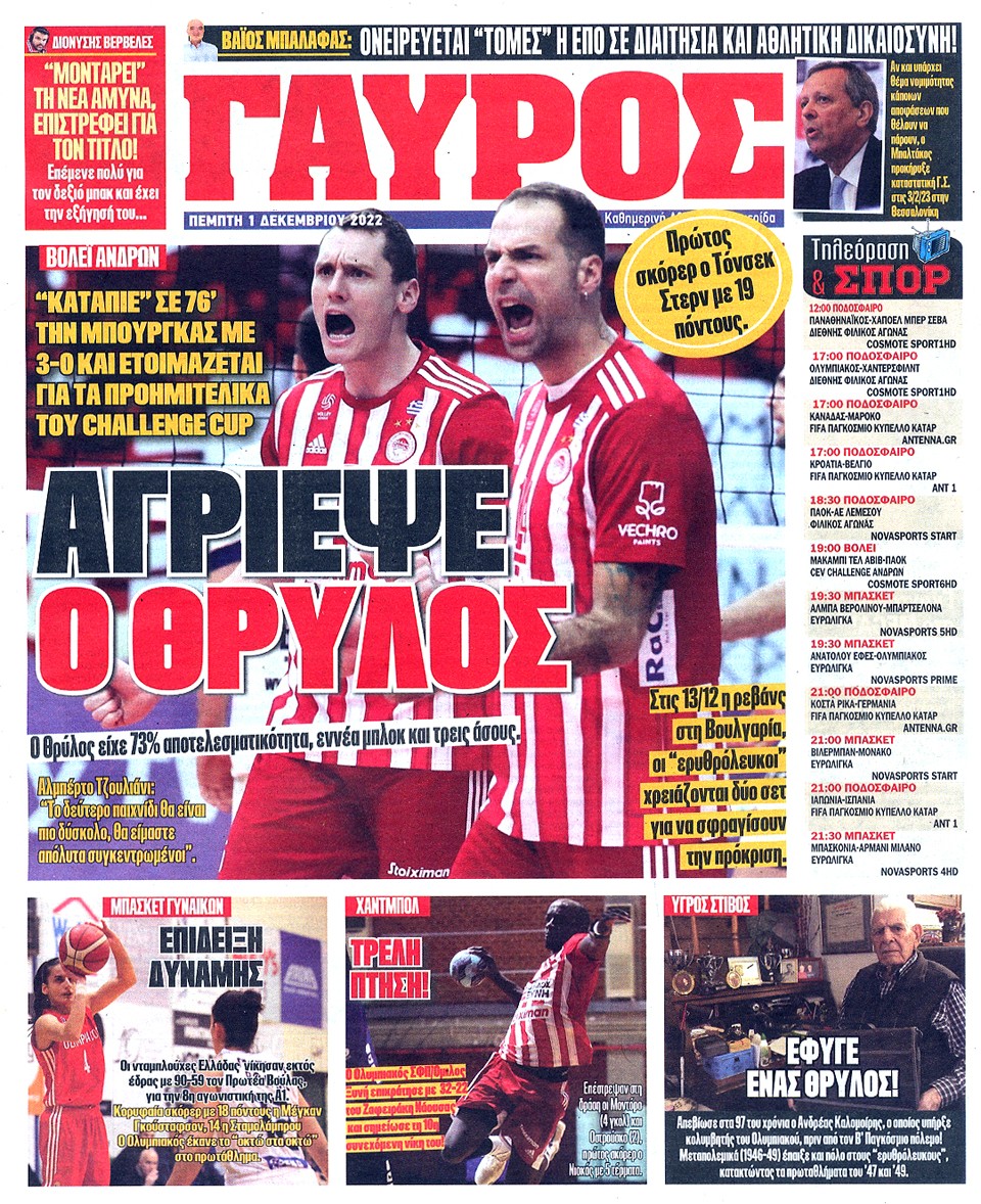 ΠΡΩΤΑΘΛΗΤΗΣ - 1 Δεκεμβρίου 2022