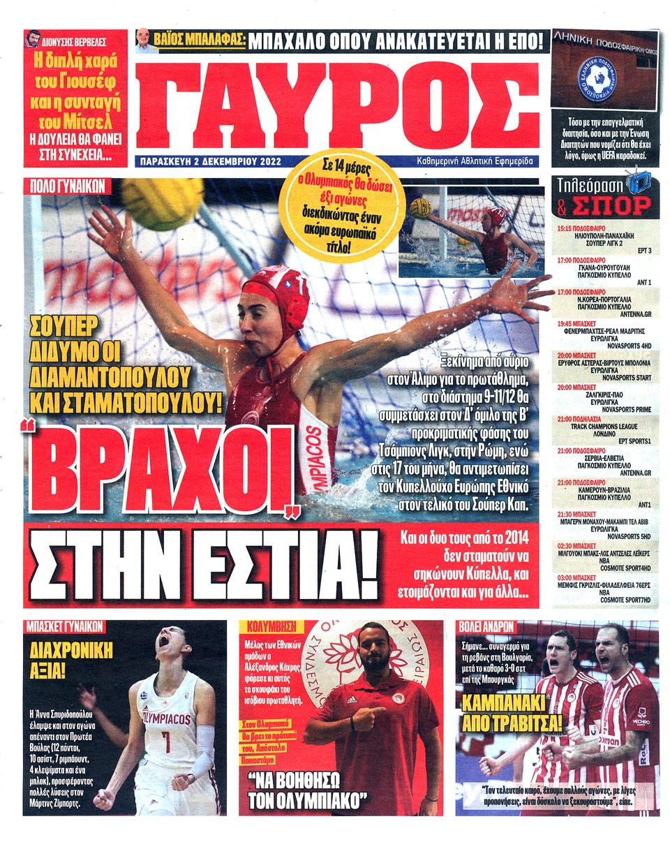 ΠΡΩΤΑΘΛΗΤΗΣ - 2 Δεκεμβρίου 2022