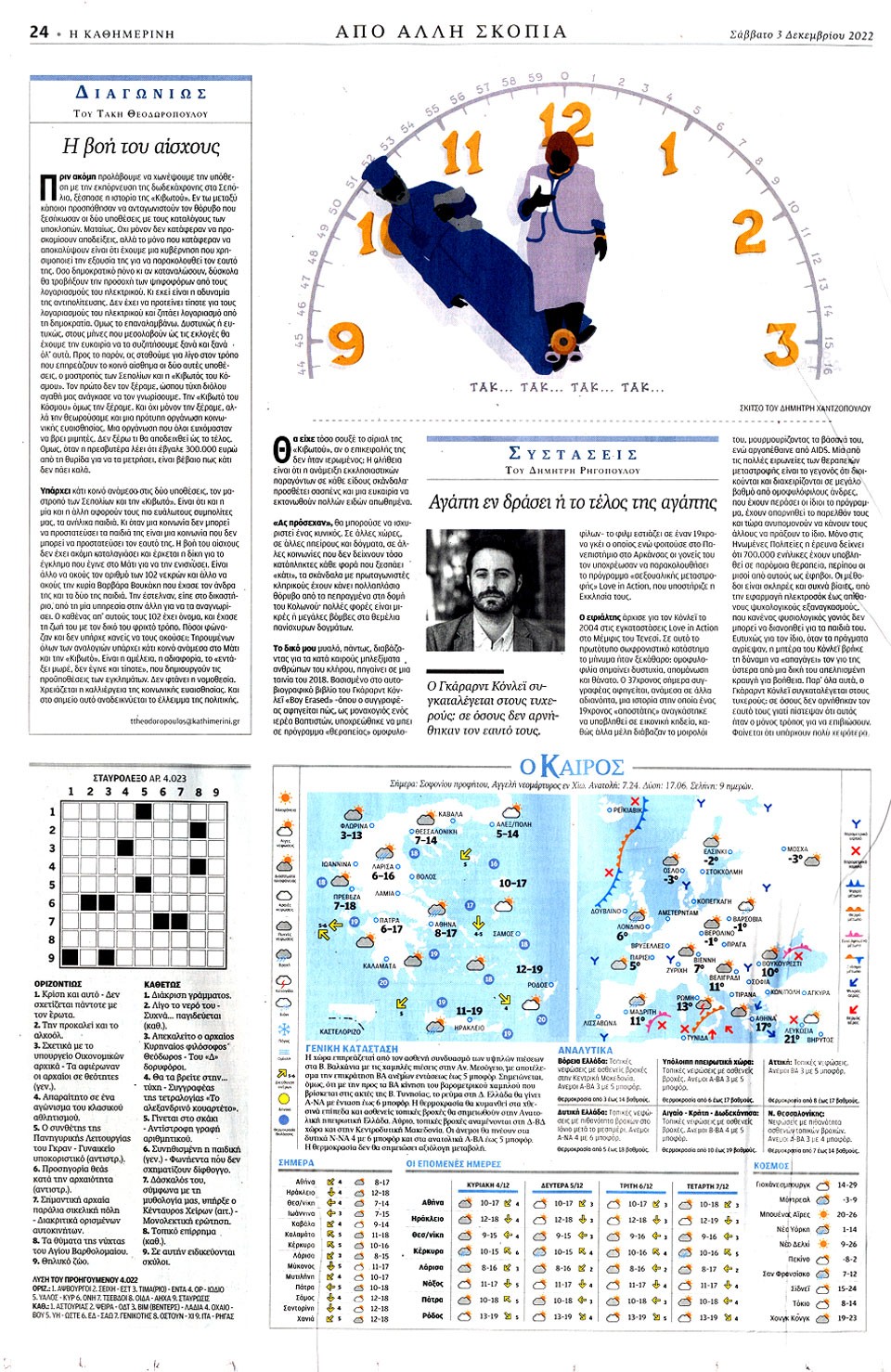 ΚΑΘΗΜΕΡΙΝΗ - 3 Δεκεμβρίου 2022
