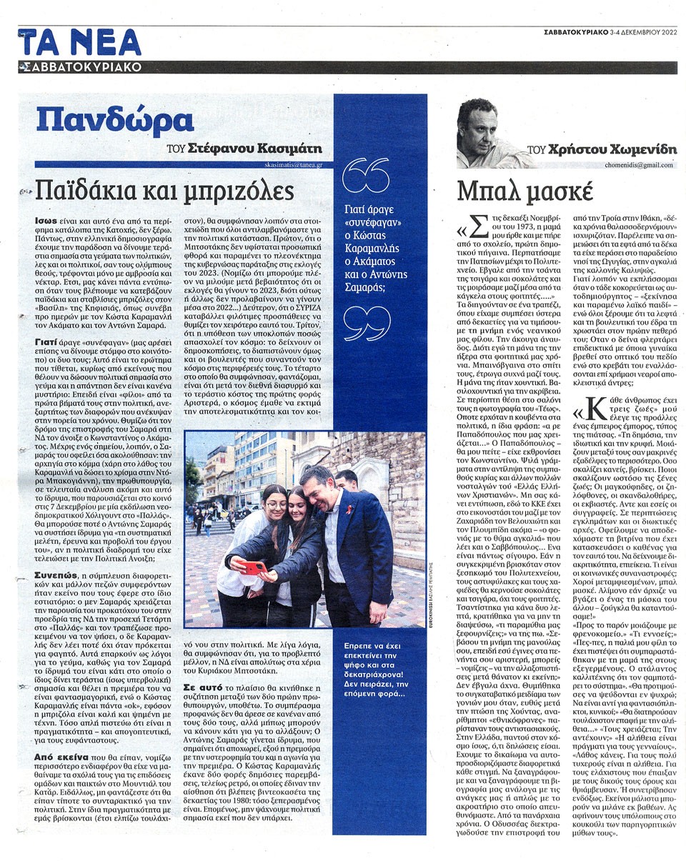 ΤΑ ΝΕΑ - 3 Δεκεμβρίου 2022