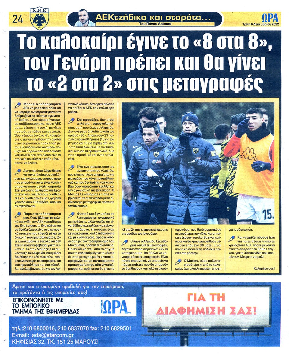 ΑΘΛΗΤΙΚΗ ΩΡΑ ΤΩΝ ΣΠΟΡ - 6 Δεκεμβρίου 2022