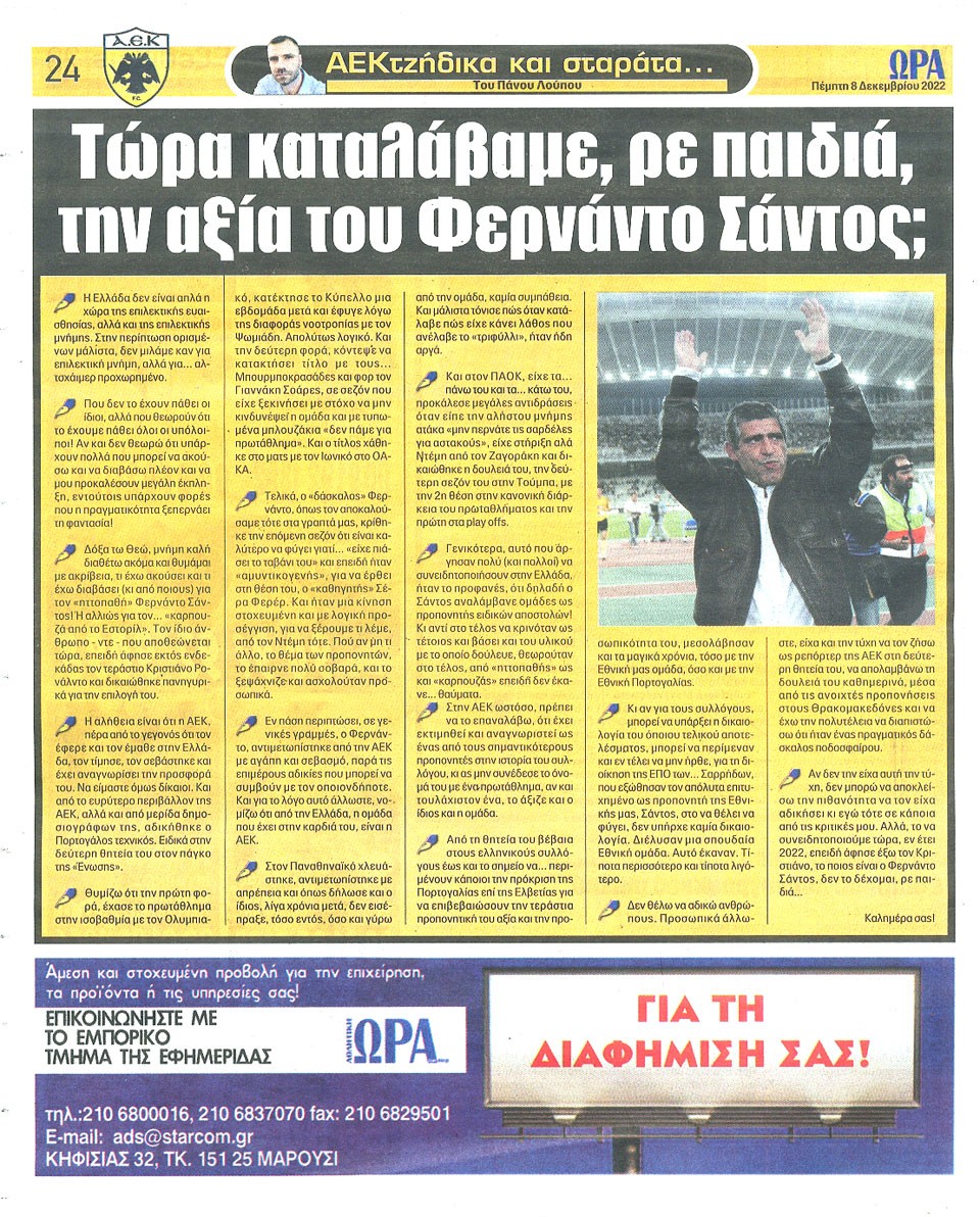 ΑΘΛΗΤΙΚΗ ΩΡΑ ΤΩΝ ΣΠΟΡ - 8 Δεκεμβρίου 2022