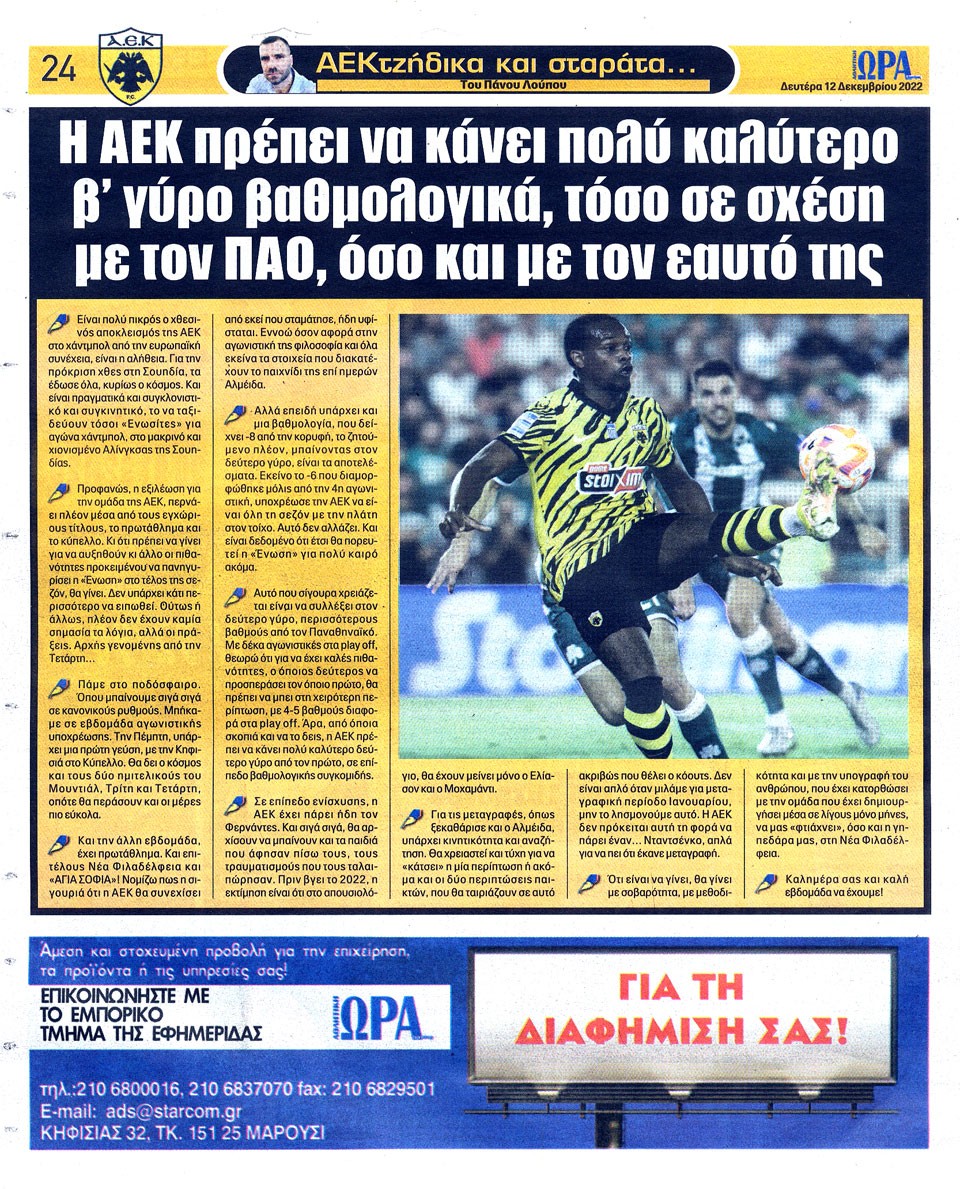 ΑΘΛΗΤΙΚΗ ΩΡΑ ΤΩΝ ΣΠΟΡ - 12 Δεκεμβρίου 2022