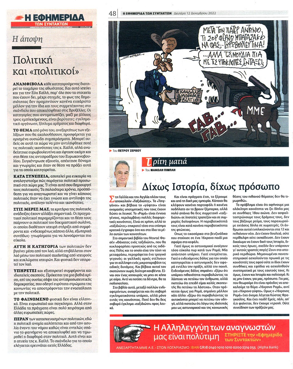 Η ΕΦΗΜΕΡΙΔΑ ΤΩΝ ΣΥΝΤΑΚΤΩΝ - 12 Δεκεμβρίου 2022