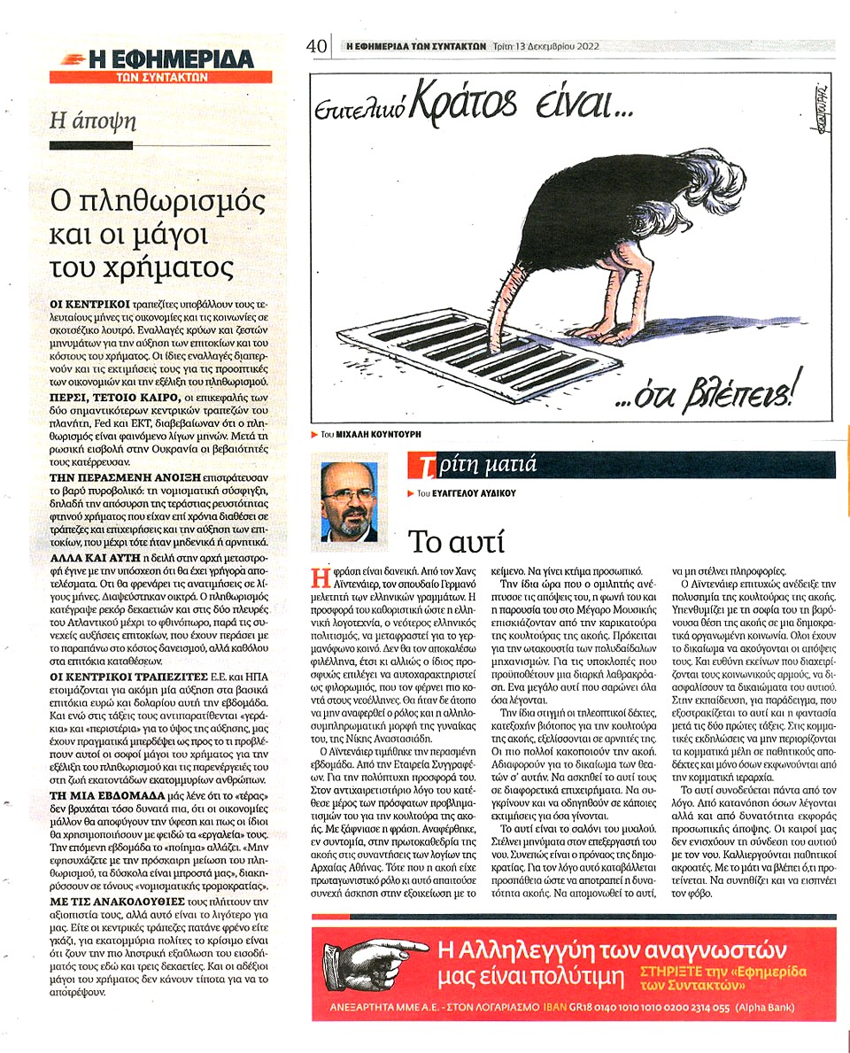 Η ΕΦΗΜΕΡΙΔΑ ΤΩΝ ΣΥΝΤΑΚΤΩΝ - 13 Δεκεμβρίου 2022