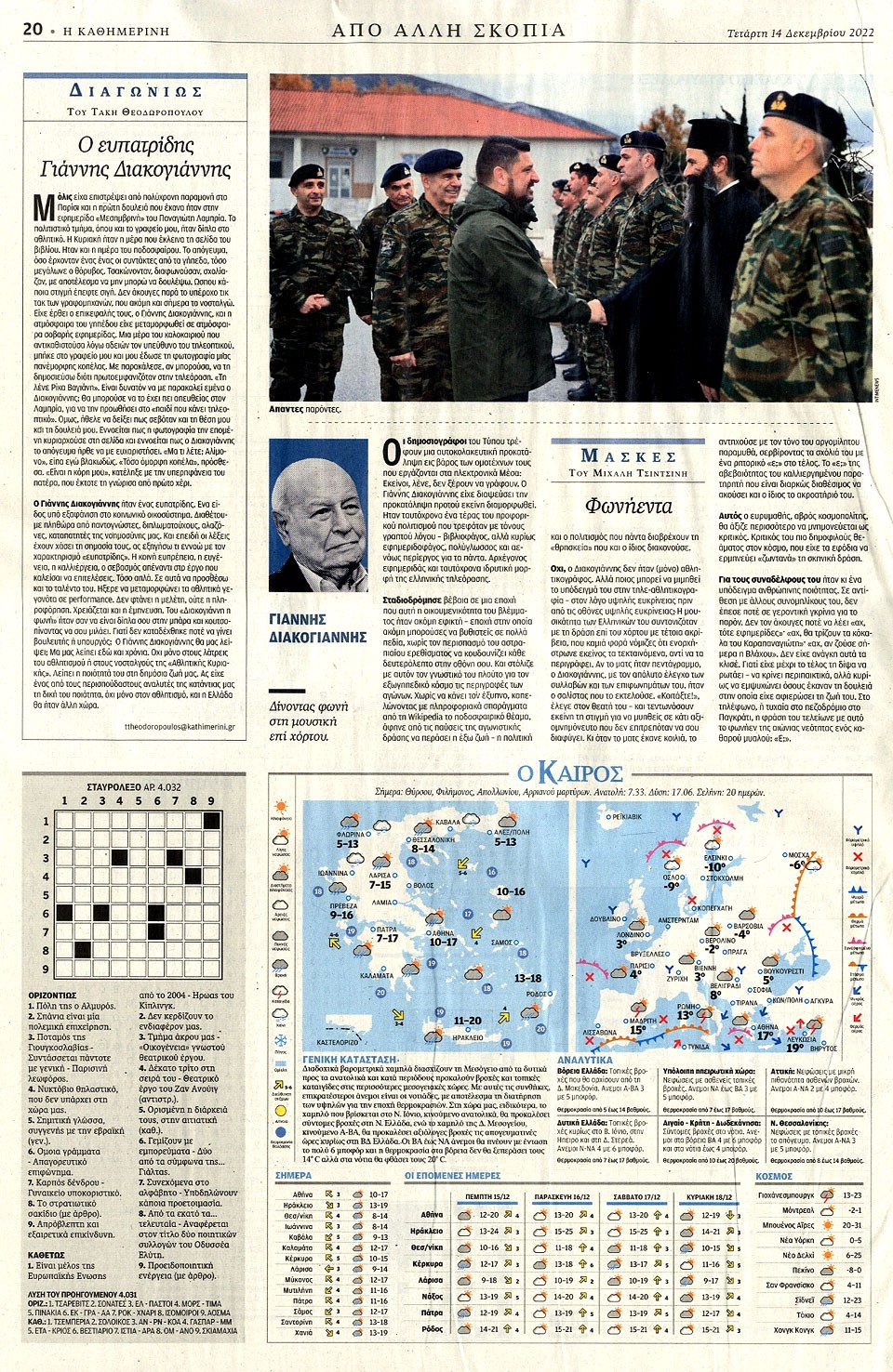 ΚΑΘΗΜΕΡΙΝΗ - 14 Δεκεμβρίου 2022