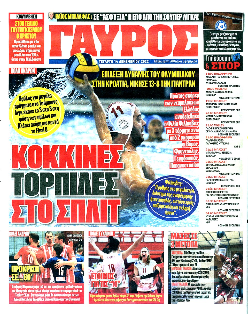 ΠΡΩΤΑΘΛΗΤΗΣ - 14 Δεκεμβρίου 2022