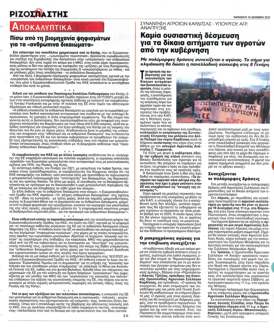 ΡΙΖΟΣΠΑΣΤΗΣ - 16 Δεκεμβρίου 2022
