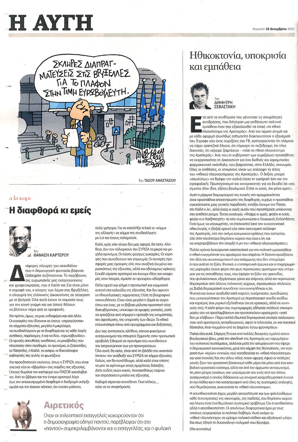 Η ΑΥΓΗ ΤΗΣ ΚΥΡΙΑΚΗΣ - 18 Δεκεμβρίου 2022