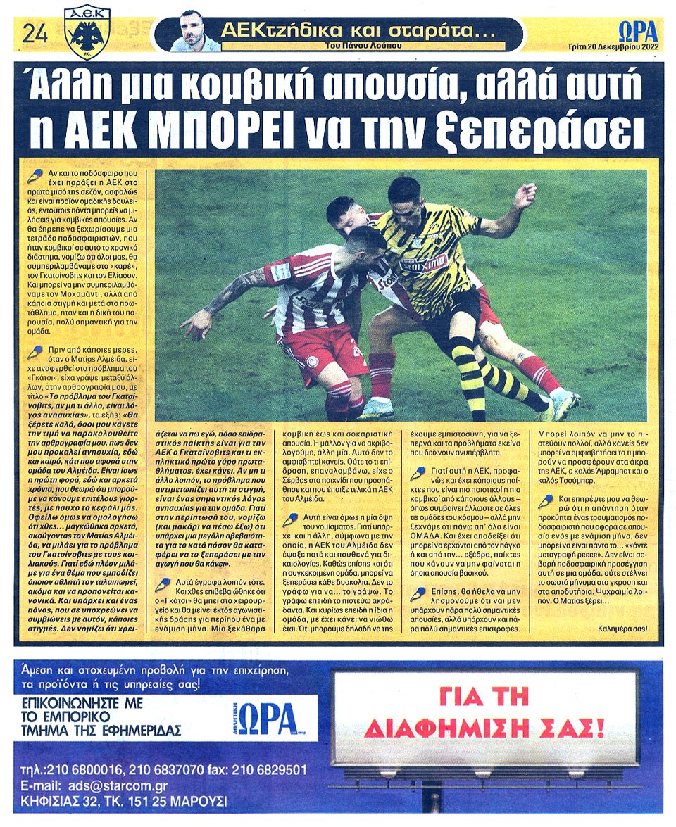 ΑΘΛΗΤΙΚΗ ΩΡΑ ΤΩΝ ΣΠΟΡ - 20 Δεκεμβρίου 2022