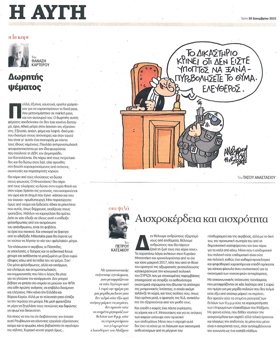 Η ΑΥΓΗ - 20 Δεκεμβρίου 2022