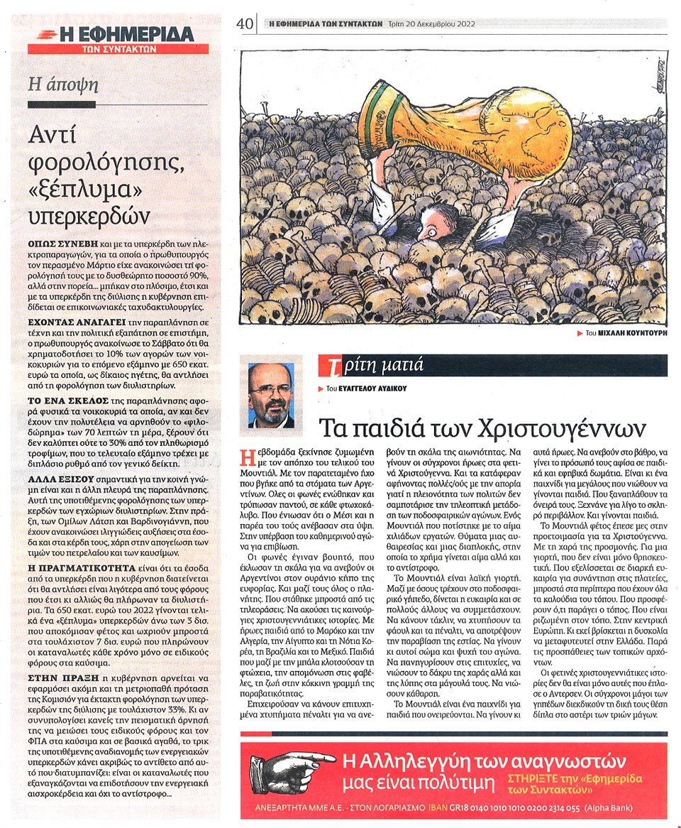 Η ΕΦΗΜΕΡΙΔΑ ΤΩΝ ΣΥΝΤΑΚΤΩΝ - 20 Δεκεμβρίου 2022