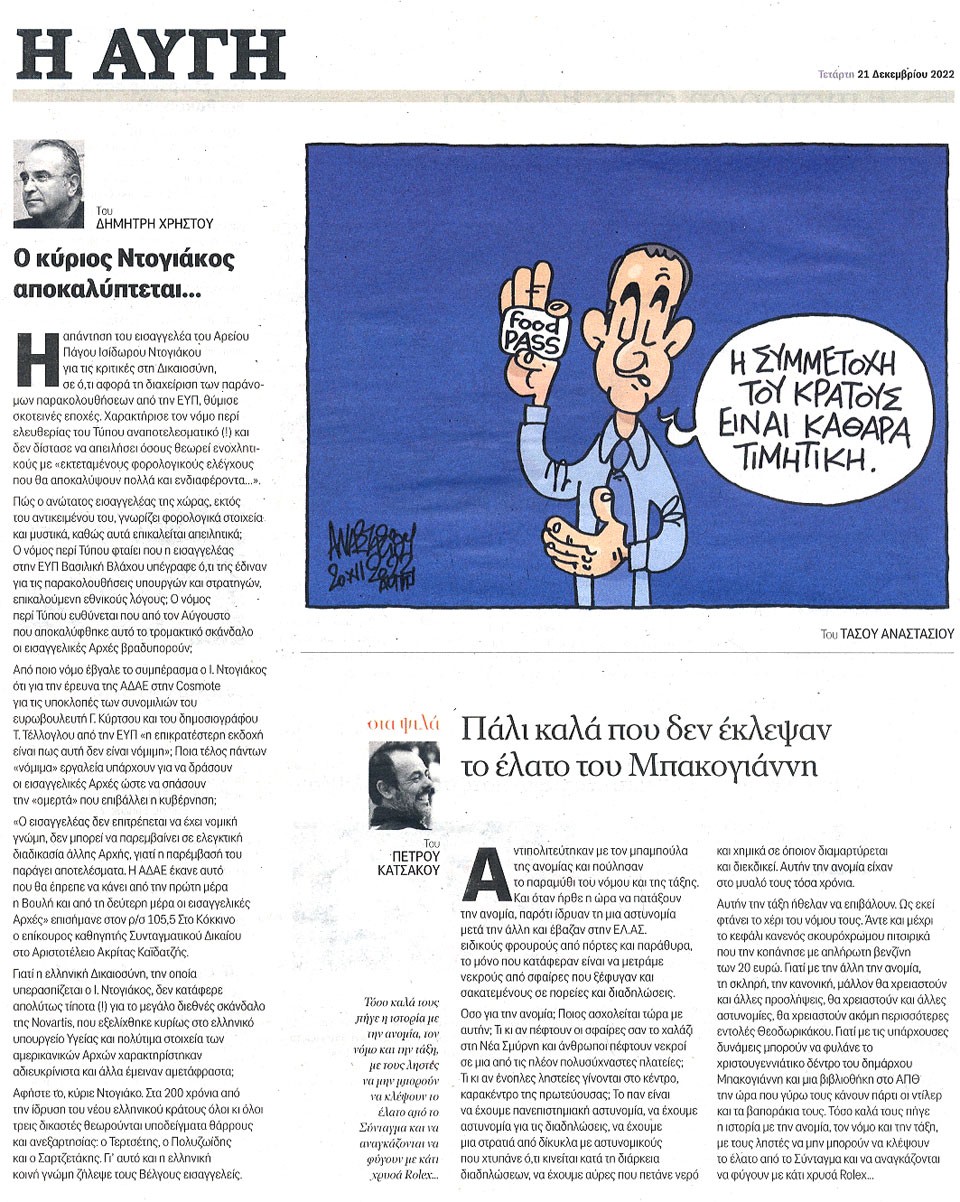 Η ΑΥΓΗ - 21 Δεκεμβρίου 2022