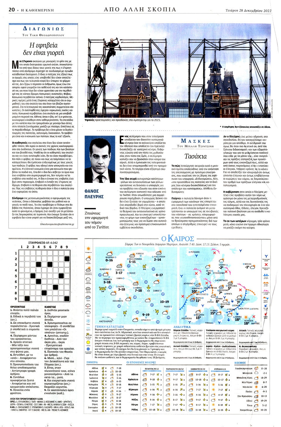 ΚΑΘΗΜΕΡΙΝΗ - 28 Δεκεμβρίου 2022