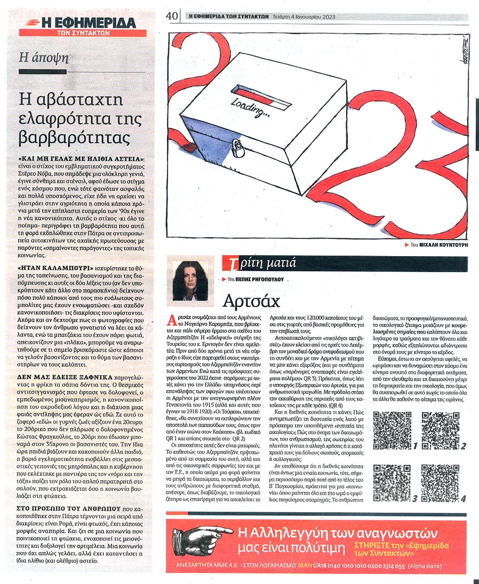 Η ΕΦΗΜΕΡΙΔΑ ΤΩΝ ΣΥΝΤΑΚΤΩΝ - 4 Ιανουαρίου 2023