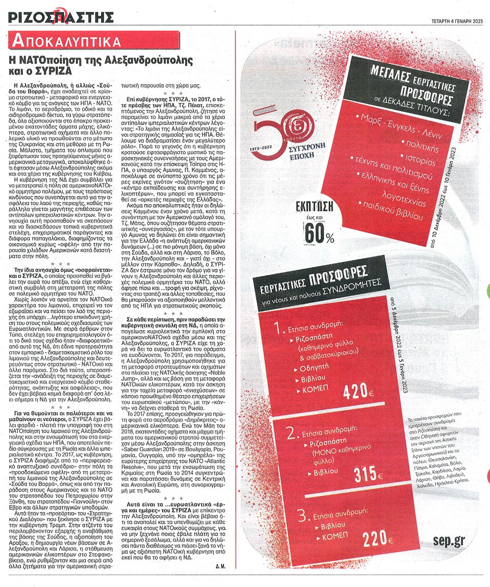 ΡΙΖΟΣΠΑΣΤΗΣ - 4 Ιανουαρίου 2023