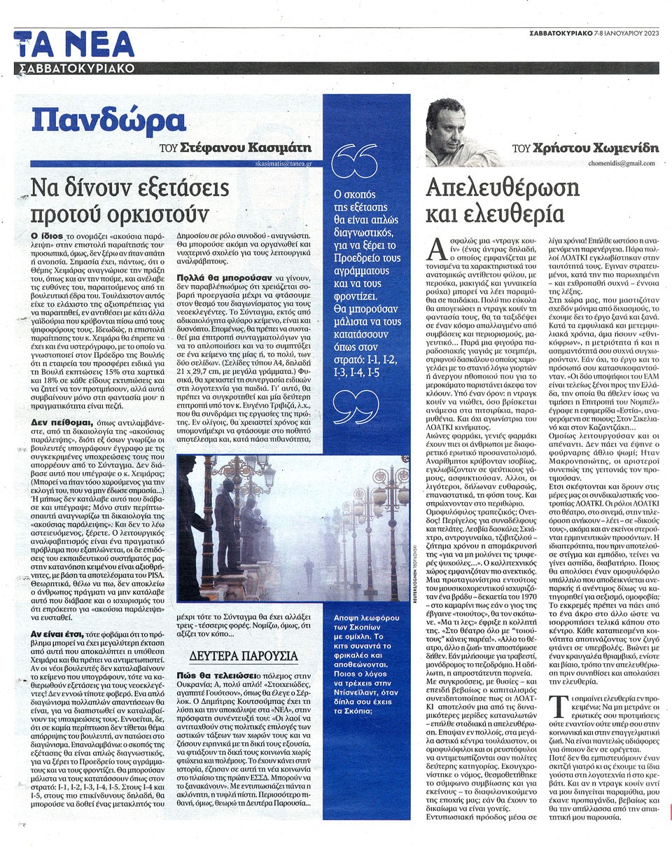 ΤΑ ΝΕΑ - 7 Ιανουαρίου 2023