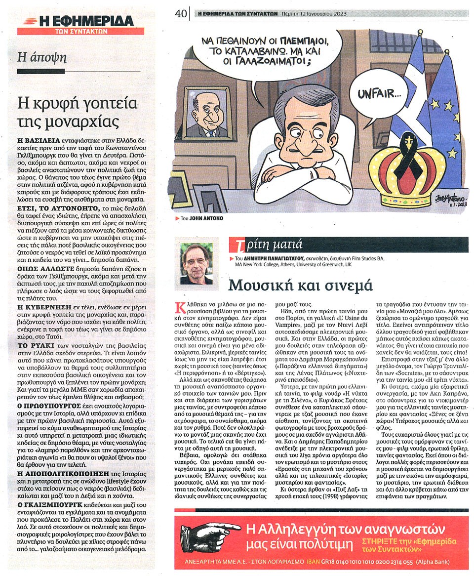 Η ΕΦΗΜΕΡΙΔΑ ΤΩΝ ΣΥΝΤΑΚΤΩΝ - 12 Ιανουαρίου 2023