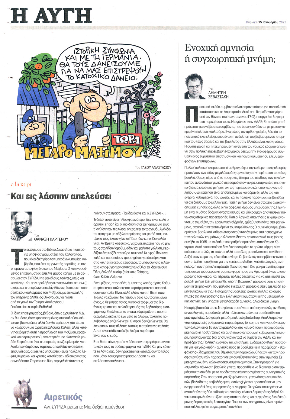 Η ΑΥΓΗ ΤΗΣ ΚΥΡΙΑΚΗΣ - 15 Ιανουαρίου 2023