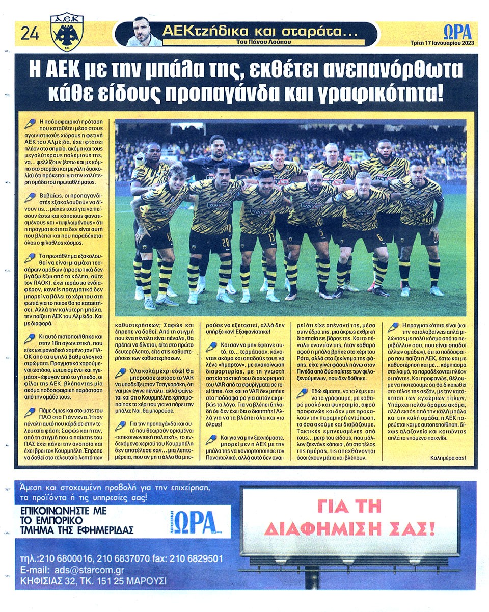 ΑΘΛΗΤΙΚΗ ΩΡΑ ΤΩΝ ΣΠΟΡ - 17 Ιανουαρίου 2023