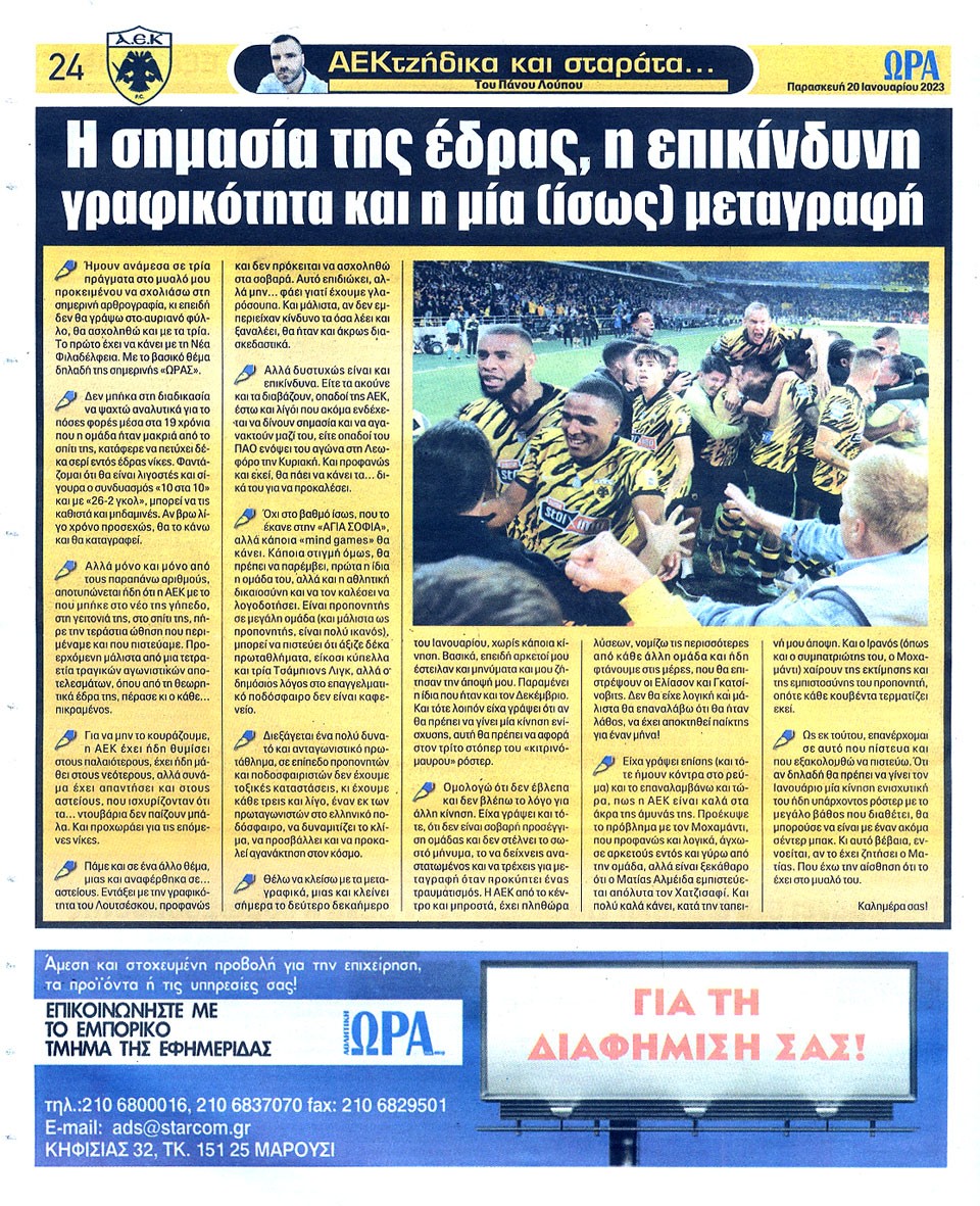 ΑΘΛΗΤΙΚΗ ΩΡΑ ΤΩΝ ΣΠΟΡ - 20 Ιανουαρίου 2023