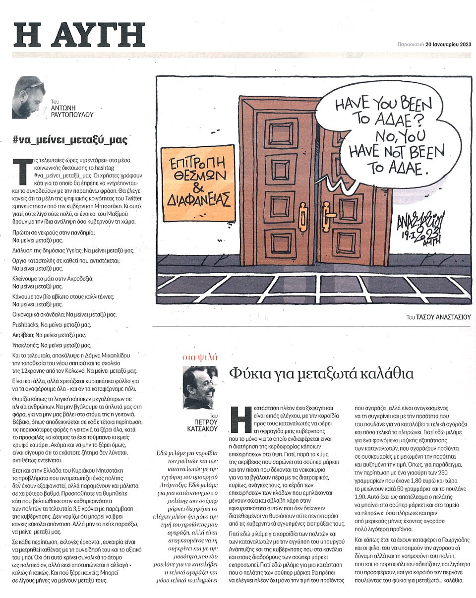 Η ΑΥΓΗ - 20 Ιανουαρίου 2023