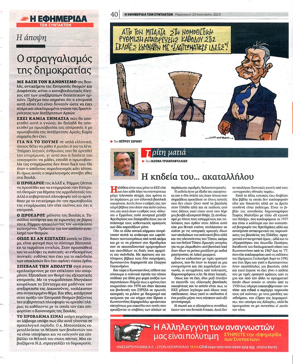 Η ΕΦΗΜΕΡΙΔΑ ΤΩΝ ΣΥΝΤΑΚΤΩΝ - 20 Ιανουαρίου 2023