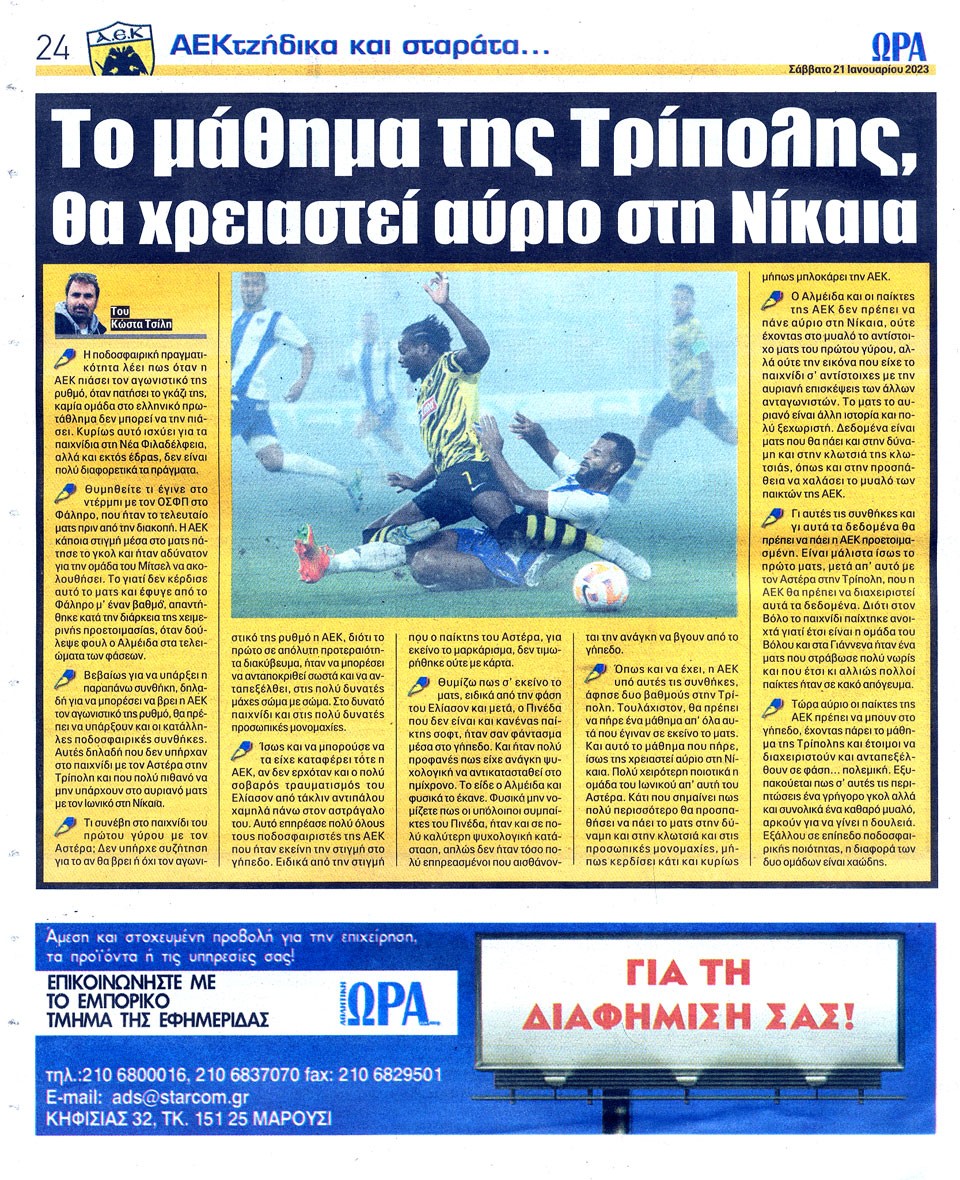 ΑΘΛΗΤΙΚΗ ΩΡΑ ΤΩΝ ΣΠΟΡ - 21 Ιανουαρίου 2023