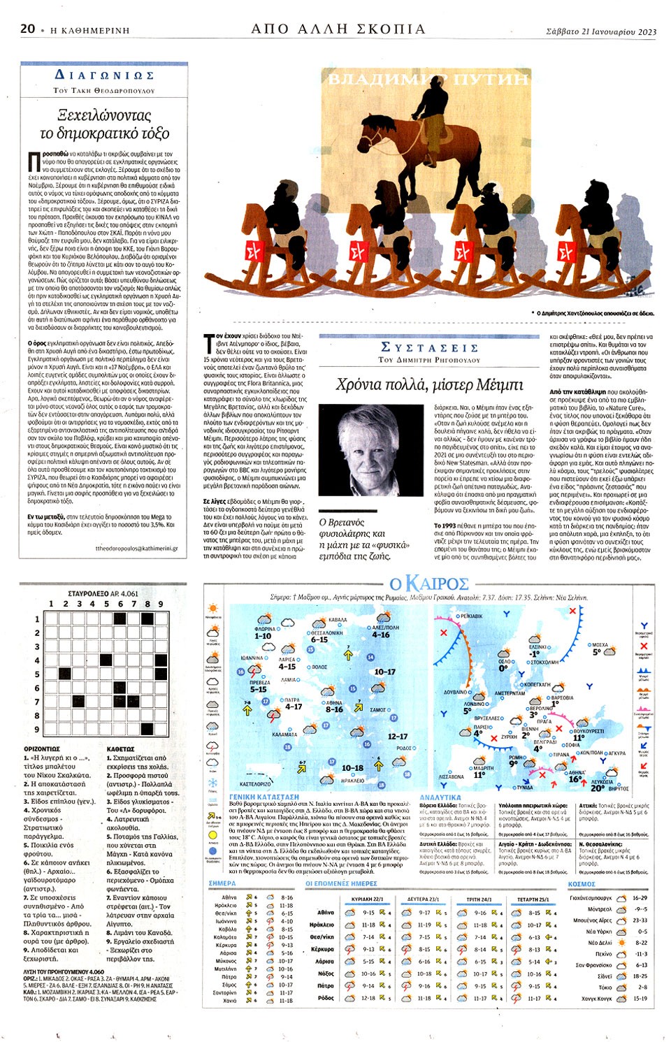 ΚΑΘΗΜΕΡΙΝΗ - 21 Ιανουαρίου 2023
