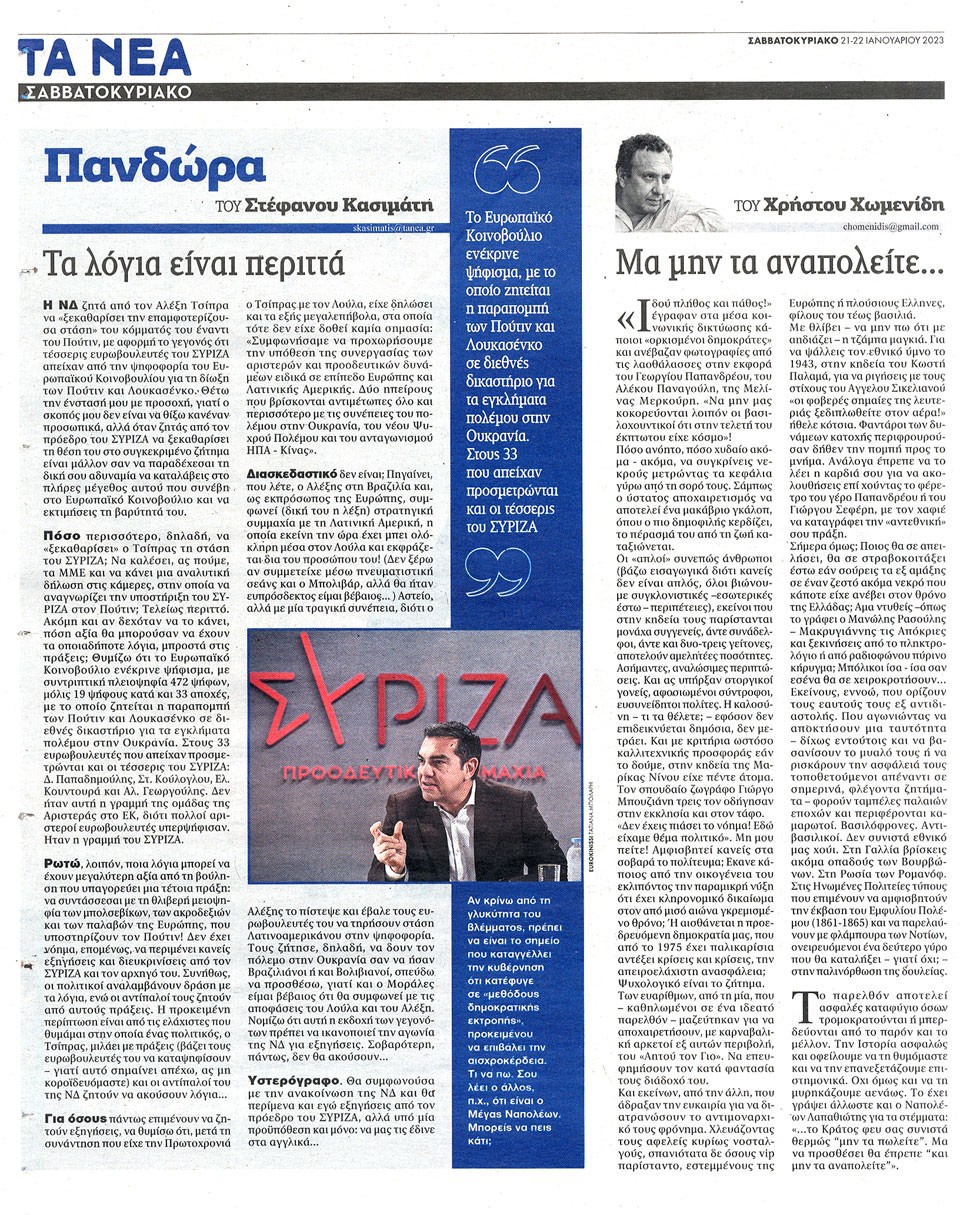 ΤΑ ΝΕΑ - 21 Ιανουαρίου 2023
