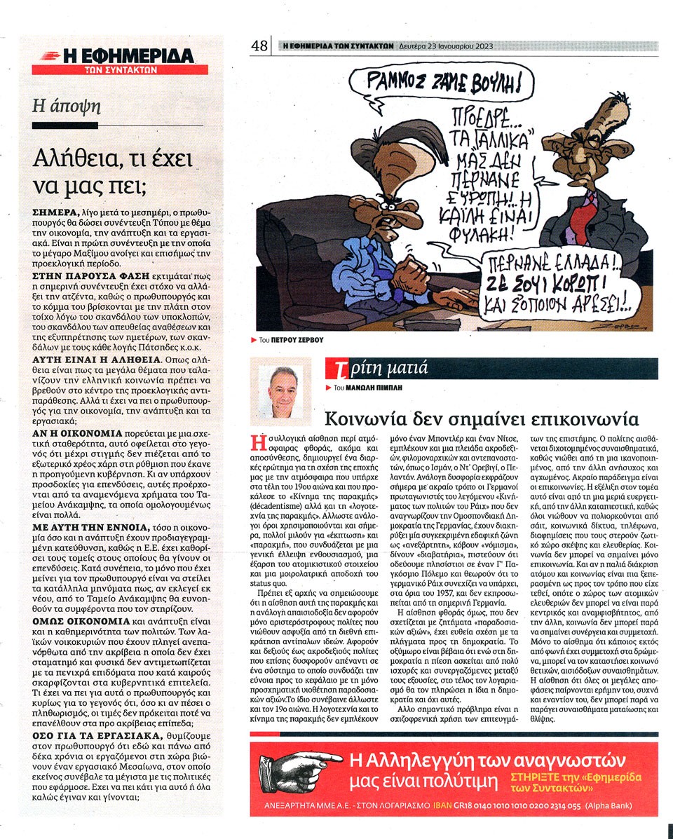 Η ΕΦΗΜΕΡΙΔΑ ΤΩΝ ΣΥΝΤΑΚΤΩΝ - 23 Ιανουαρίου 2023