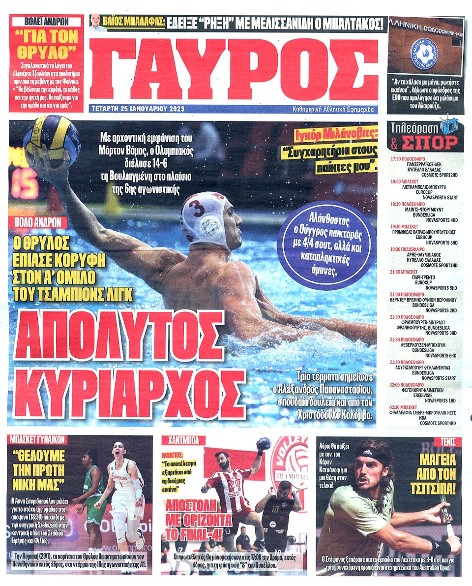 ΠΡΩΤΑΘΛΗΤΗΣ - 25 Ιανουαρίου 2023