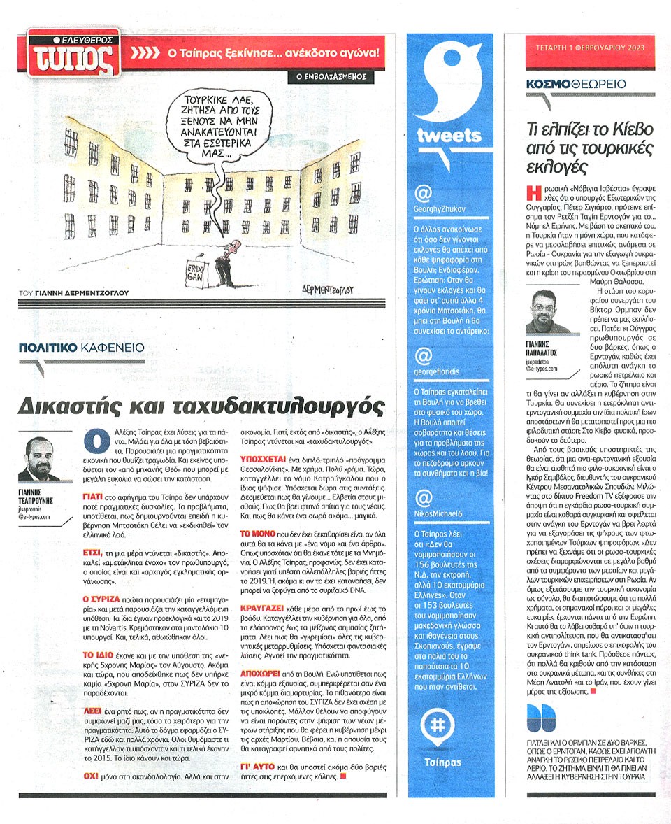 ΕΛΕΥΘΕΡΟΣ ΤΥΠΟΣ - 1 Φεβρουαρίου 2023
