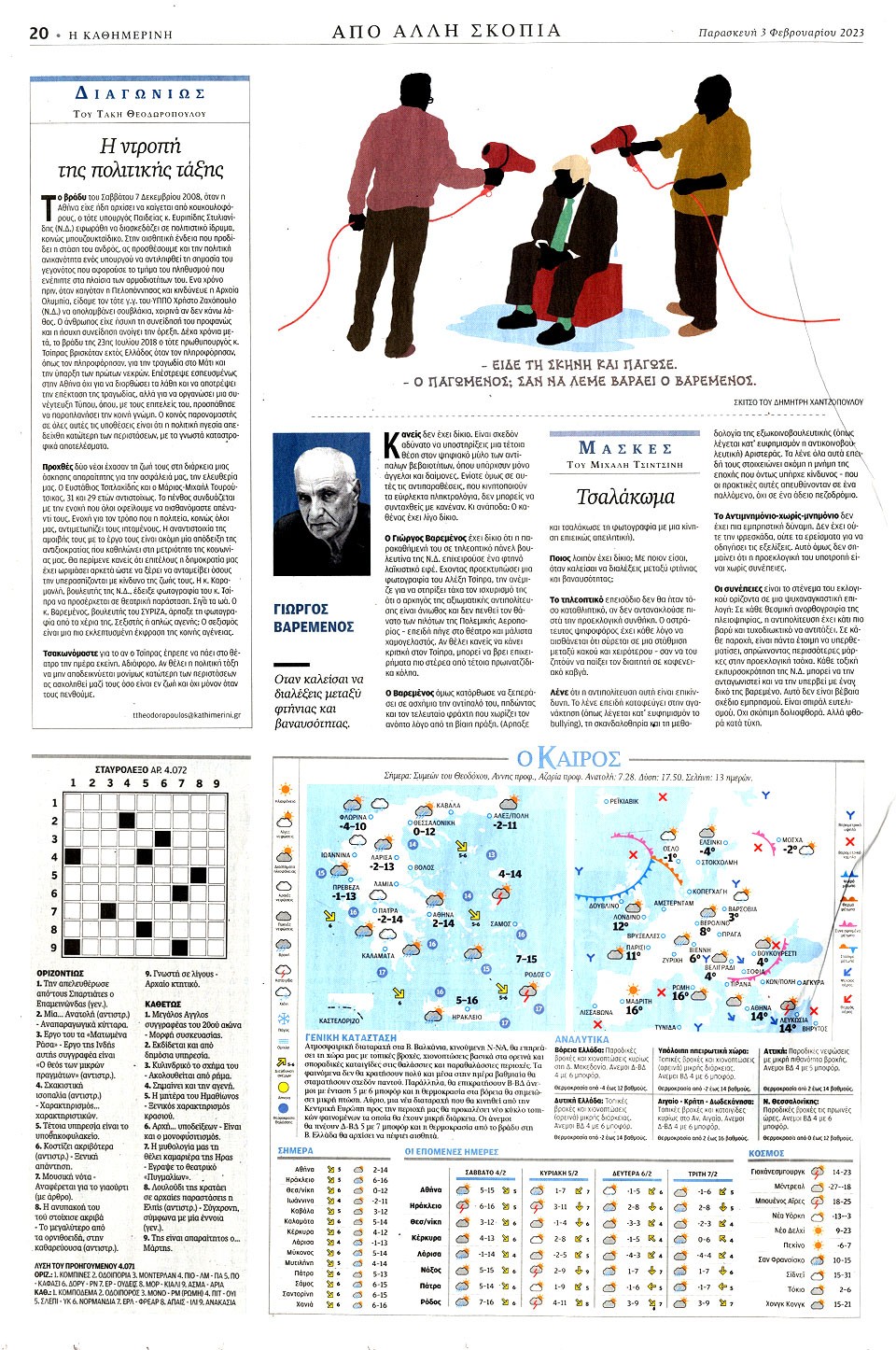 ΚΑΘΗΜΕΡΙΝΗ - 3 Φεβρουαρίου 2023