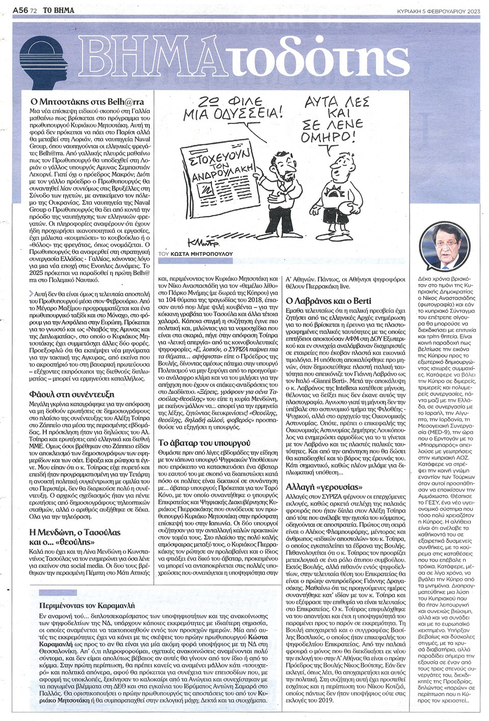 ΤΟ ΒΗΜΑ ΤΗΣ ΚΥΡΙΑΚΗΣ - 5 Φεβρουαρίου 2023