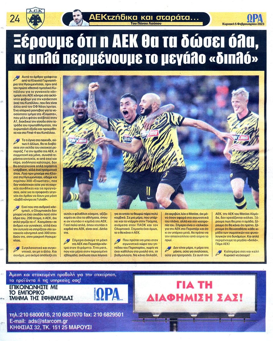 ΑΘΛΗΤΙΚΗ ΩΡΑ ΤΩΝ ΣΠΟΡ - 5 Φεβρουαρίου 2023