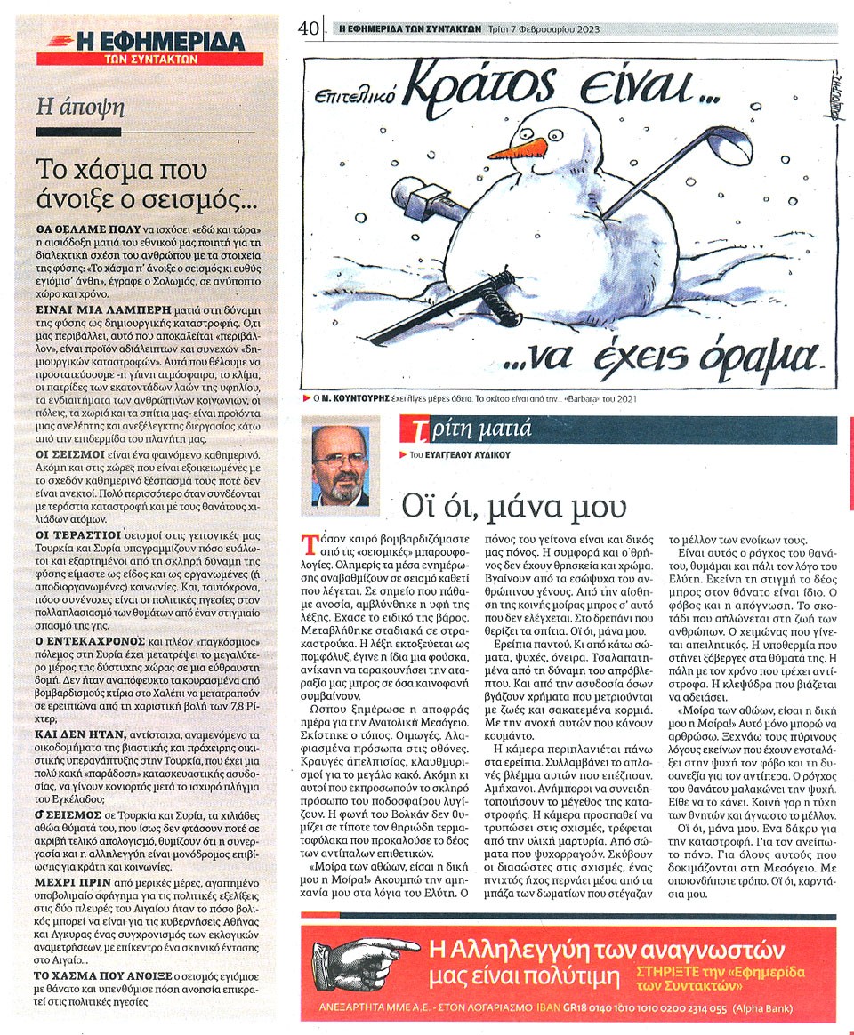 Η ΕΦΗΜΕΡΙΔΑ ΤΩΝ ΣΥΝΤΑΚΤΩΝ - 7 Φεβρουαρίου 2023