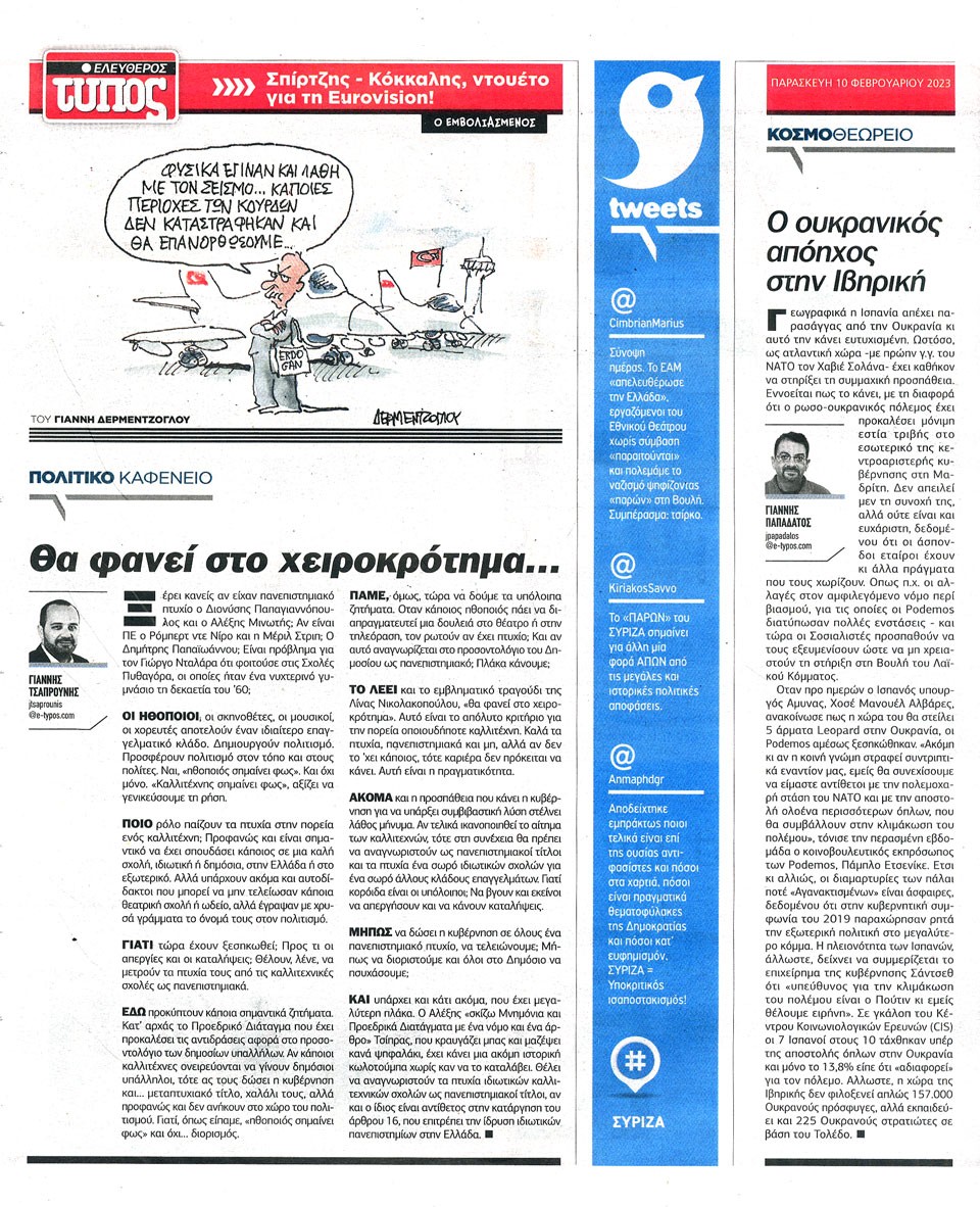 ΕΛΕΥΘΕΡΟΣ ΤΥΠΟΣ - 10 Φεβρουαρίου 2023