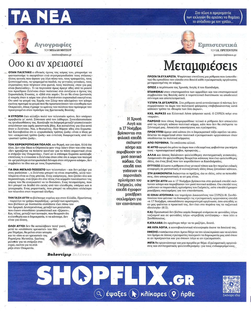 ΤΑ ΝΕΑ - 10 Φεβρουαρίου 2023
