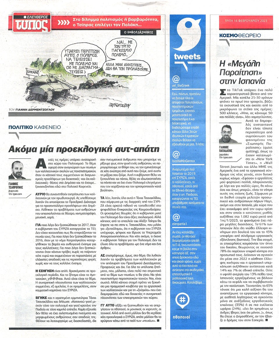 ΕΛΕΥΘΕΡΟΣ ΤΥΠΟΣ - 14 Φεβρουαρίου 2023