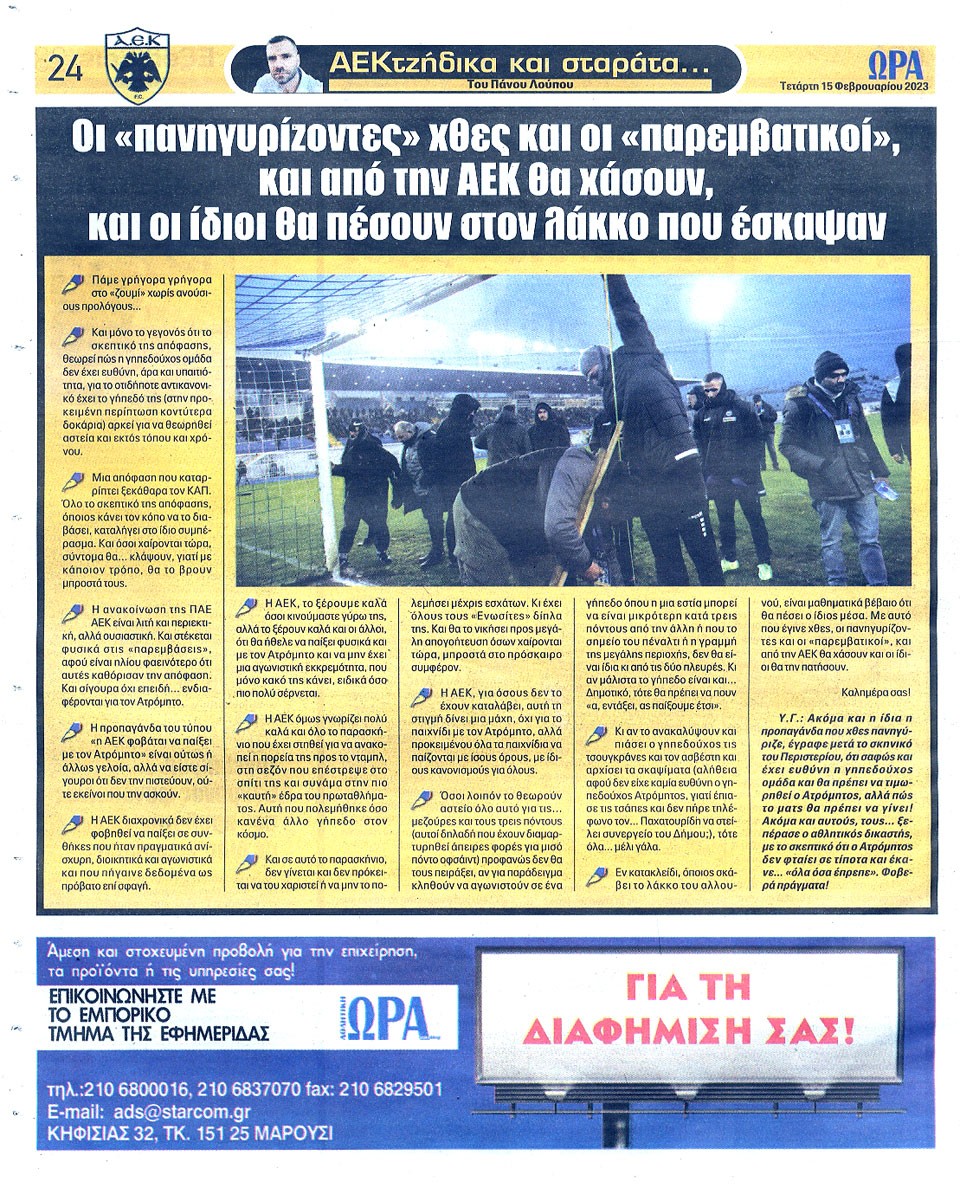 ΑΘΛΗΤΙΚΗ ΩΡΑ ΤΩΝ ΣΠΟΡ - 15 Φεβρουαρίου 2023