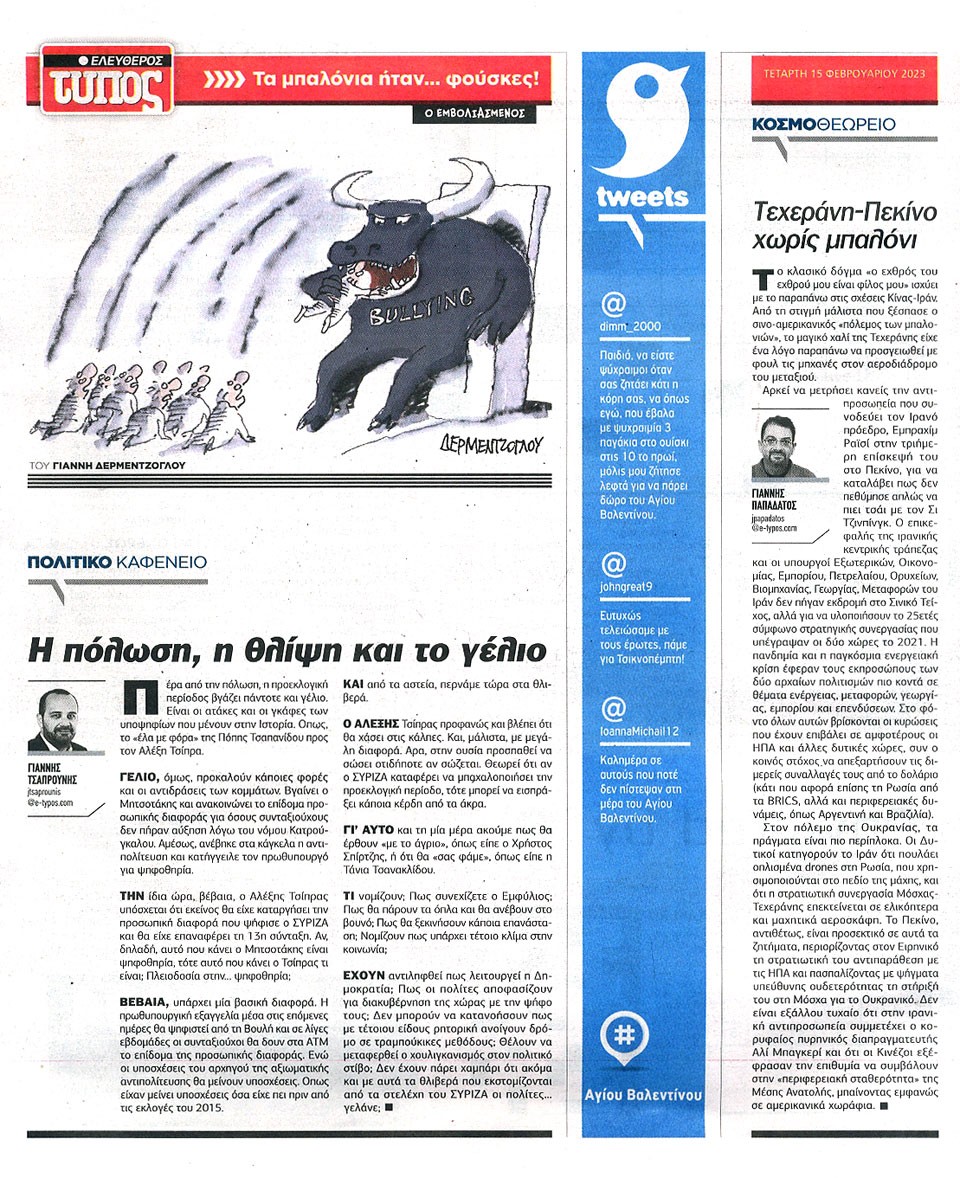 ΕΛΕΥΘΕΡΟΣ ΤΥΠΟΣ - 15 Φεβρουαρίου 2023